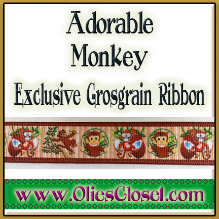 Adorable,Monkey,Olie's,Closet,Exclusive,Grosgrain,Ribbon,Adorable Monkey Olie's Closet Exclusive Grosgrain Ribbon